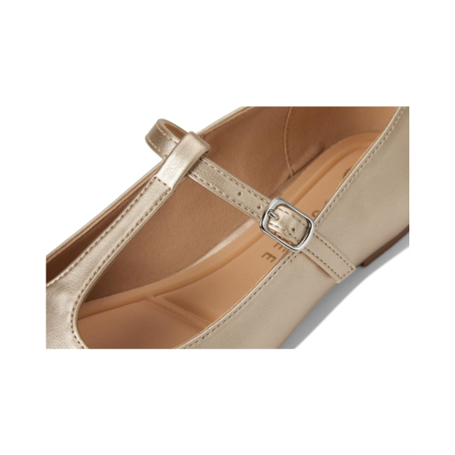 - The Journee Collection Theah Mary Jane shoes exude vintage charm with their faux leather design, featuring a T-strap with a buckle closure for a secure fit. Their soft square toe shape adds a modern twist to the classic silhouette. These flat shoes are made of a polyurethane upper and lining. Perfect for any moment in life, these elegant slip-on shoes blend timeless style with everyday comfort that you will find in their cushioned polyurethane insole.