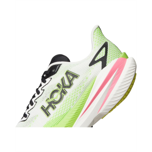 - Who doesn't want to go Mach speed? A propulsive speed training partner, the Hoka Mach X 3 shoes are the perfect addition to your running arsenal. Built for up-tempo training miles with an extra-resilient PEBA-topped midsole and snappy Pebax plate, they are refined with a collar and a breathable woven polyester upper to keep things light, cool, and fast for those next-level efforts. The Pebax plate and Speed-centric MetaRocker create a unique fulcrum effect that encourages a smoother transition from heel-strike through toe-off. Get ready for your outdoor rides or training sessions with these lace-up shoes.
