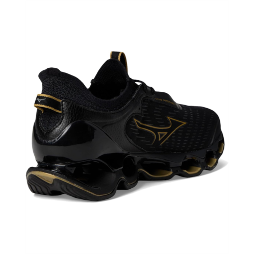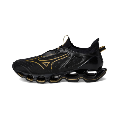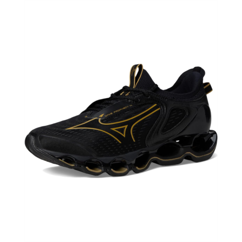 - Experience a stride ahead with the Mizuno Wave Prophecy 14 shoes. Their sleek monofilament mesh and synthetic leather details complement Mizuno's renowned full-length INFINITY MIZUNO WAVE plate that disperses energy from impact to a broader area to provide a stable platform and superior cushioning, delivering unrivaled stability while reducing midsole fatigue. The U4ic midsole is Innovatively light, well-cushioned, responsive, and resilient, and provides optimal shock reduction, durability, and a superior ride. These lace-up shoes are made of a nylon upper, EVA insole, and polyester lining. The U4icX Strobel Lasting Board ensures a comfortable underfoot feel. Elevate your runs with the advanced design of these low-top shoes, where innovation meets perpetual support.