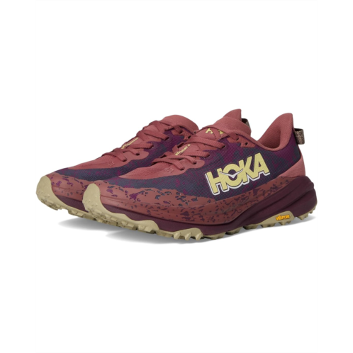 - Grab everyone's attention wherever you go wearing the Hoka Women's Speedgoat 6 shoes. The textile and synthetic upper of these shoes features a lace-up closure that offers a secure fit. These running shoes come with a removable EVA footbed and textile lining. Designed for trail running and hiking adventures, these lace-up shoes come with a heel pull loop that ensures easy on and off. Gear up for a comfortable ride wearing these stylish sneakers.