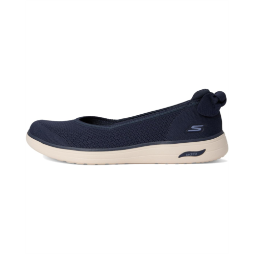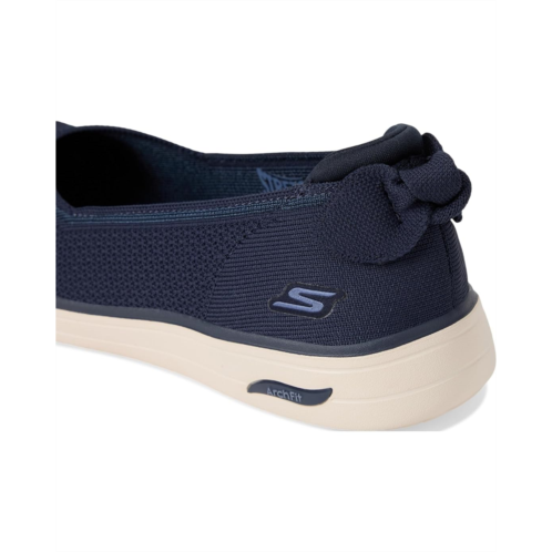 - A classic favorite is reimagined with stylish details and comfort in Skechers On-The-Go Arch Fit Inspire - Mira. This vegan skimmer design features a Stretch Fit engineered knit upper with a bow detail, lightweight ULTRA GO cushioning, and a removable Arch Fit insole. It comes with round toe, engineered knit V-vamp ballerina with bow. The Goga Mat Technology offers an excellent combination of support and comfort, providing a lightweight cushioned, responsive feel that's perfect for all-day wear.
