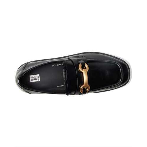 [US] Womens FitFlop F-Luma Chunky-Snaffle Box-Leather Demi-Wedge Loafers