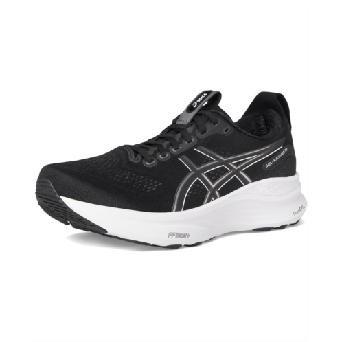 - Introducing the ASICS GEL-Kayano 32 shoes, the pinnacle of support and comfort. Their FF BLAST PLUS foam midsole is combined with a higher midsole stack height while reducing the weight to provide a more balanced experience, making your training feel smoother and more comfortable. The engineered polyester upper features a lace-up closure and a knit heel pull tab for an easy put-on and take-off. These lace-up shoes feature a 4D GUIDANCE SYSTEM that helps provide adaptive stability for a more supportive and balanced stride during your distance training. They are made of an OrthoLite X-55 polyester insole and polyester lining. The Rearfoot PureGEL technology of these shoes allows movement in multiple planes as the foot transitions through the gait cycle, while the reinforced tongue wing along the arch also provides additional comfort and support. Get ready for a comfortable day out with these running shoes.