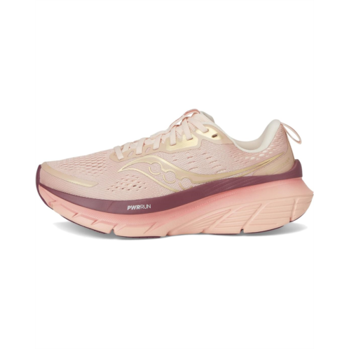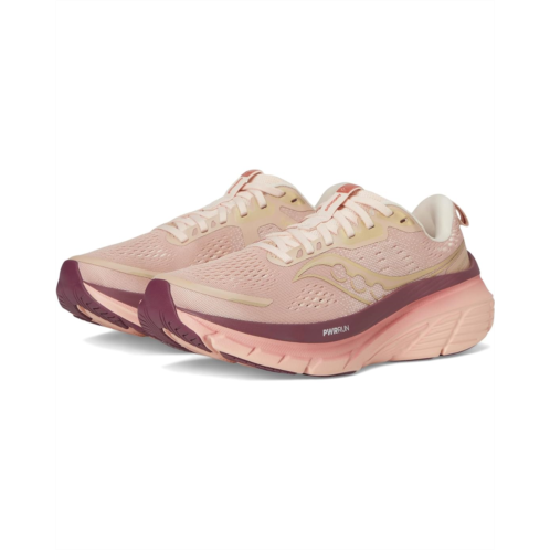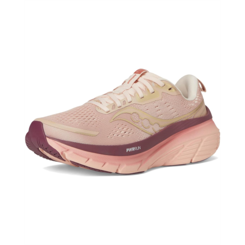 - Power through your day sporting the Saucony Guide 18, a perfect fusion of style, support, and all-day comfort. Featuring a premium leather upper for durability and a sleek look, this sneaker keeps you cool with its breathable mesh design and soft nylon lining. The EVA insole cradles your foot with plush comfort, while VERSARUN cushioning absorbs impact, reducing pressure for a smooth ride. A sturdy rubber outsole offers superior grip and durability, keeping up with your every move. With a offset and a secure lace-up closure, this shoe is built for effortless, stable strides-wherever life takes you!