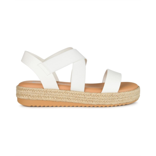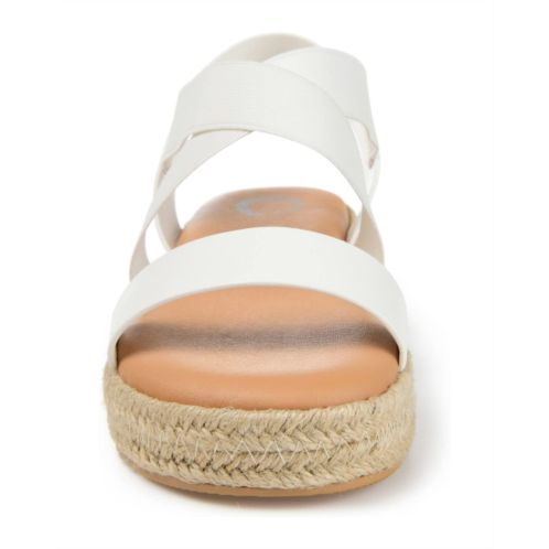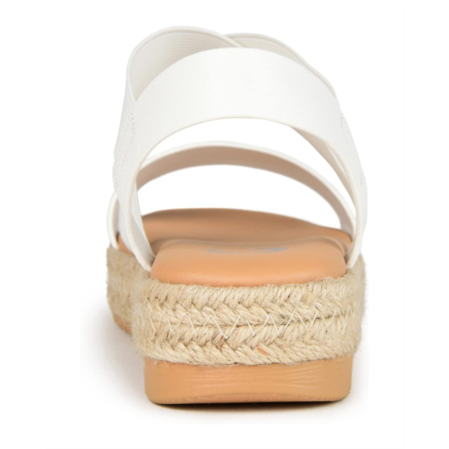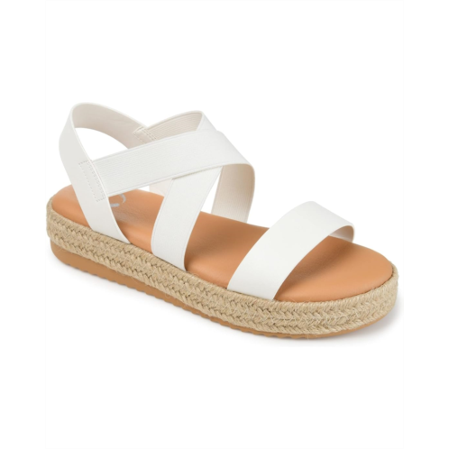 - Enjoy the warm weather in the Journee Collection Caroline. This strappy sandal features elasticized uppers for a flexible fit and a footbed for added support. A walkable wedge heel wrapped in espadrille perfects the design. At journee, the sandal styles are going to be perfect for any occasion. Whether that be a formal, business, or casual dress, these sandals will be a perfect match.