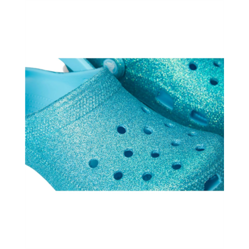 - Experience lightweight 360-degree comfort and good flexibility wearing Crocs Kids Classic Glitter Clogs, that perfectly accent your little ones outfits with their sparkly detailing. The waterproof clogs are expertly crafted with an ethylene vinyl acetate upper with holes for breathability, ethylene vinyl acetate insole, and slingback strap for a secured fit.