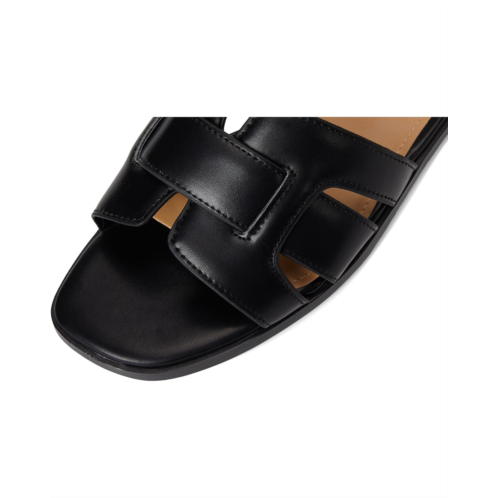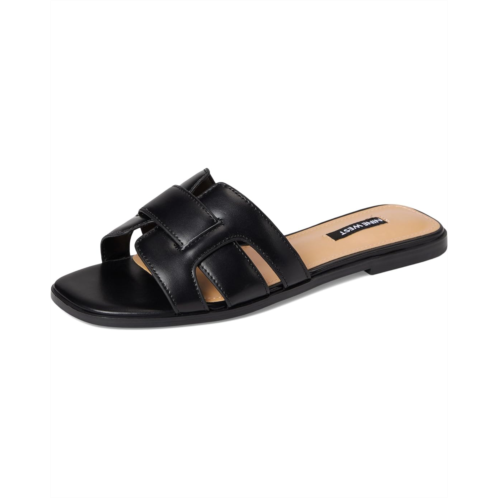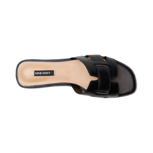 - Interwoven straps rest on the upper of these trendy Nine West Germani sandals. This slip-on footwear features faux leather upper construction and a square toe silhouette.