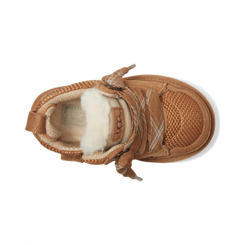 - Let your little one step into learning with style wearing the UGG Kids Lowmel. Crafted with suede and textile upper, they've added a mesh vamp for warm-weather wearability. Set on a molded footbed and sugarcane EVA outsole for premium comfort. It features webbing heel strap, the UGG logo patch, padded collar, oversized padded tongue, two-tone flat lace, and laces made from UNIFI recycled polyester fibers.