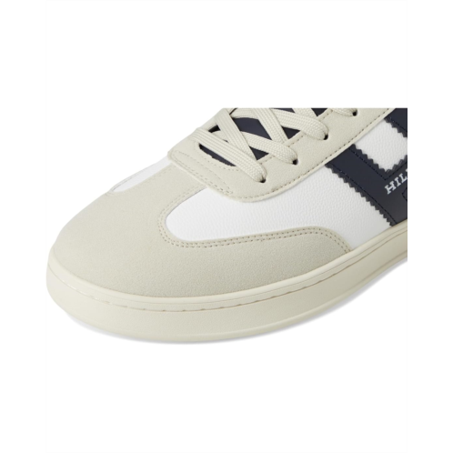 - The Tommy Hilfiger Javlon sneakers sport a large H-logo on the side for branded appeal. They are built to be more eco-friendly with 3 points of sustainability: recycled materials used within the lining, sock, and outsole. These modernized T-toe shoes are made of a faux leather upper, memory foam cushioned insole, and 100% recycled polyester lining. Step out in style for work, a day with friends, and more, wearing these lace-up sneakers.