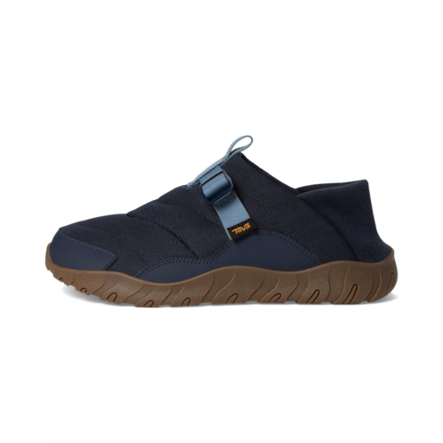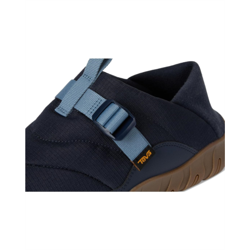 - Cozy vibes, trail-ready spirit, and sustainable design - the Teva Reember Camp is your ultimate adventure-after-dark shoe. Built with a puffy, quilted nylon upper and an added layer of filler, it delivers unmatched warmth when the sun sets on your outdoor journey. The collapsible heel makes slipping in and out effortless, while the adjustable strap closure ensures a secure, customized fit. With an ethylene vinyl acetate insole and polyurethane sockliner, every step feels cushioned and supported, while the durable rubber cupsole keeps you steady with reliable traction. What sets this pair apart is its eco-conscious build - crafted with recycled polyester ripstop, recycled ethylene vinyl acetate in the midsole, and a recycled rubber outsole - so you can relax by the campfire knowing you're treading lightly on the planet.