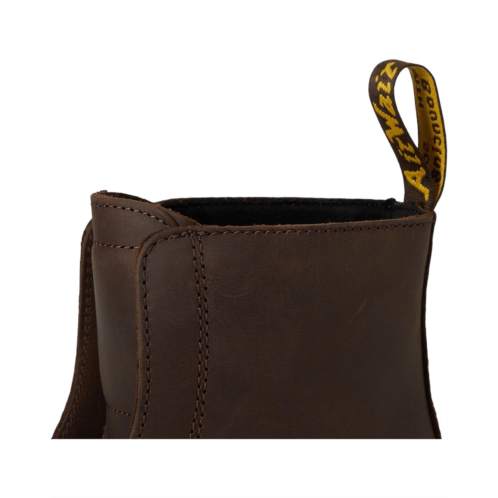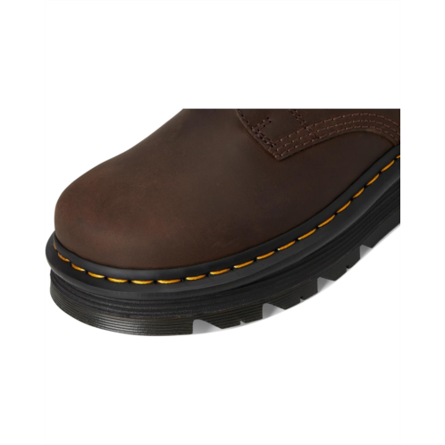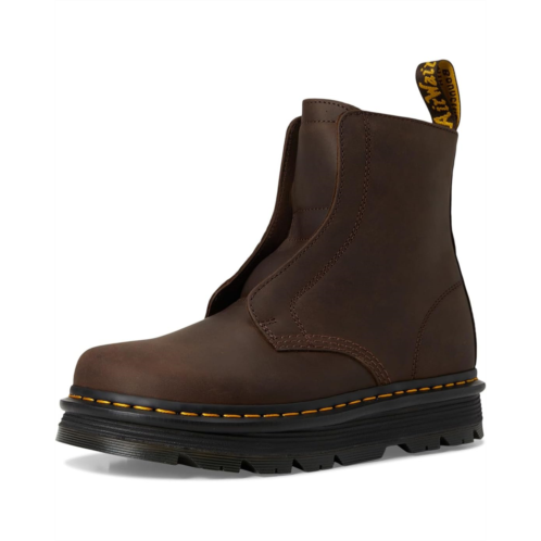 - The Dr. Martens Zebzag Laceless boot is all about mixing iconic toughness with all-day ease. Crafted with rugged Wyoming leather, it channels the DNA of the classic 1460 while ditching the laces for a no-fuss pull-on design. The high-top silhouette and round toe bring attitude, while the platform heel gives you just the right lift. Inside, a polyester lining, SoftWair footbed, and lightweight EVA outsole deliver plush cushioning and shock absorption, because tough days deserve a softer landing. The ergonomic Zebzag sole fuses EVA with durable PVC, making every step light yet unstoppable. And of course, it wouldn't be a Doc without the iconic yellow welt stitching, bold tread, and exaggerated grooving.