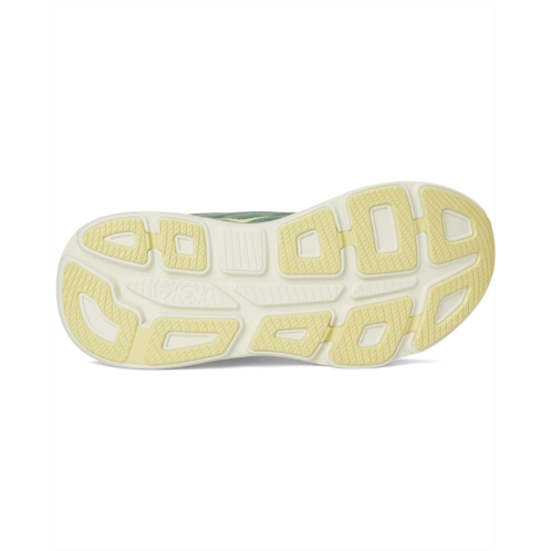 Romance: One of the hardest working shoes in the HOKA lineup, the Bondi 9 delivers peak plushness for everyday miles. Overhauled from top to bottom, we've increased the stack height and added a new premium foam midsole to deliver that soft, resilient ride that's become synonymous with the Bondi. Elevated with a 3D molded collar and structured knit upper with zonal breathability, this ultra-cushioned cult favorite has been finished with Durabrasion rubber to combat high wear zones. The upper is engineered with mesh and recycled polyester, reflective upper details, extended heel pull, and 3D molded collar. The super critically foamed EVA midsole features smooth MetaRocker, rearfoot-focused Active Foot Frame, and Molded EVA sockliner.