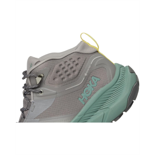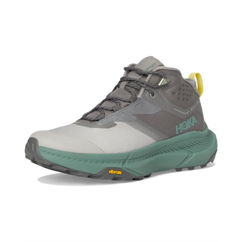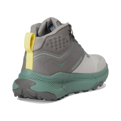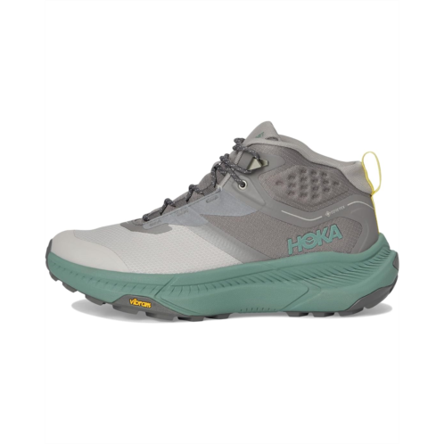 - The Hoka Transport Hike GTX is the versatile chukka built for town streets and rugged trails alike. Crafted with a polyester upper and lining, it features a waterproof GORE-TEX bootie and water-resistant face fabric to keep your feet dry on unpredictable adventures. Speed lace hooks and metal hardware ensure effortless on-and-off, while 360° reflectivity keeps you visible after dark. Designed for nimble performance, the low-profile silhouette, sugarcane EVA midsole, and heel-focused Active Foot Frame deliver comfort that lasts all day. Smooth MetaRocker geometry paired with a one-piece Vibram Megagrip rubber outsole with multi-directional traction lugs offers surefooted stability across terrain. Finished with durable toe and heel caps, rPET rear-quarter mesh, and a molded PU sockliner infused with soybean oil, this chukka blends eco-conscious innovation with everyday performance.