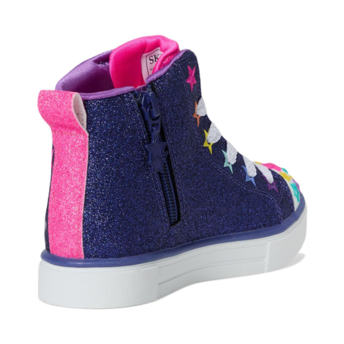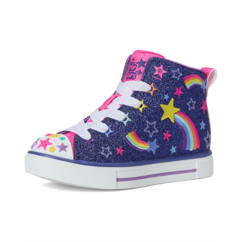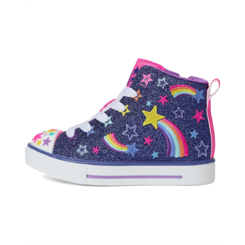 - The SKECHERS KIDS Twinkle Sparks 314831L is a total showstopper, blending fun and functionality into one magical high-top sneaker. Crafted with a soft canvas upper and comfy cotton lining, this sneaker features a dazzling star and rainbow embroidered print that kids will love. The Twinkle Toes light-up molded star toe cap adds an extra pop of excitement with every step, while bigger kids' sizes come with a handy on/off button for the lights. A lace-up front and side zipper make getting ready a breeze, and the Adaptive Closure ensures a snug, personalized fit that stays secure. Finished with a durable PU outsole, this shoe is perfect for play, school, or any sparkle-worthy adventure. Let them light up the world with every stride in these dreamy, easy-on, easy-off kicks made to inspire confidence and joy with every twinkle!