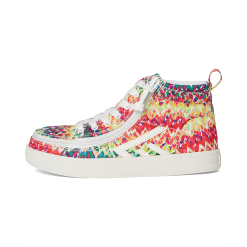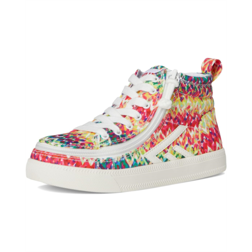- Add a pop of color to your wardrobe with the BILLY Footwear Kids BILLY CS High Top Sneakers. The high-top sneakers are crafted with an allover printed multicolored cotton upper, sensory-friendly cotton lining, a removable rubber insole with moderate cushioning, and a rubber midsole. The contrasting lace-up design and zipper entry ensure a secure fit. Plus, the ankle pull tab allows easy donning & doffing.