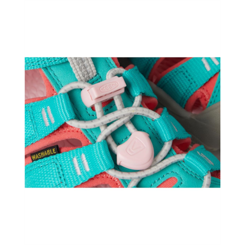 - The KEEN Kids Newport H2 sandal is perfect for your adventurous kiddo. These water-resistant shoes feature a washable polyester webbing with quick dry lining and a fully enclosed design for all day use and protection. The quick-cinch bungee lacing with adjustable hook-and-loop strap offers a comfortable, secure fit and easy on/off.