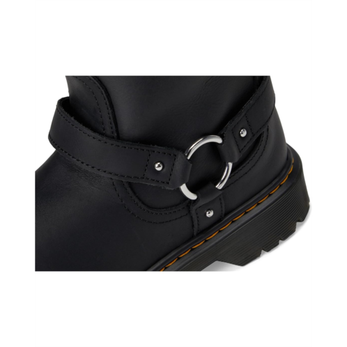 - The Dr. Martens Genaya boot stands out and stands tall, taking a nod from biker style on an elevated Bex sole. The durable Wyoming leather is playground friendly and detailed with a harness and side zip for easy on/off. It is signed with DM's unmistakable yellow stitching.