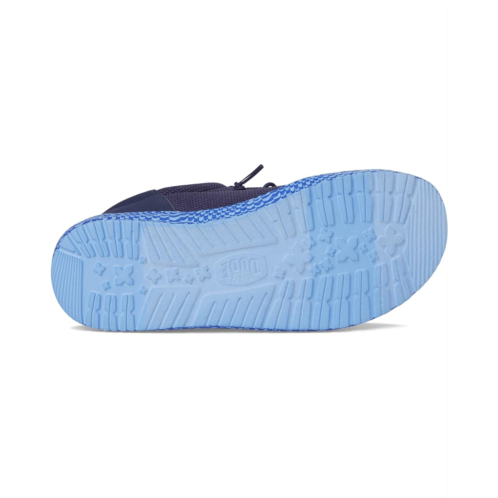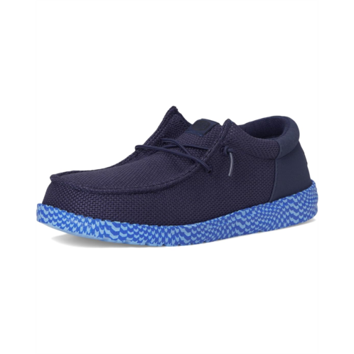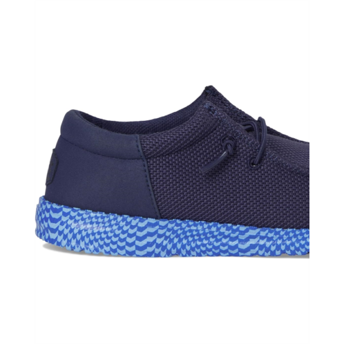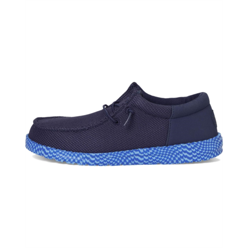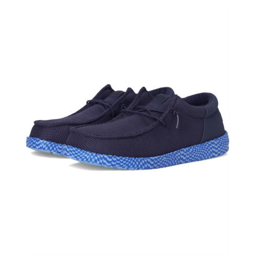 - Easy, breezy, textile makes the Hey Dude Kids Wally Funk Warped Geo Sneakers ready to roam. The easy-on elastic laces, EVA outsole, and removable EVA insole provide go-to comfort. The rounded toe design and Flex & Fold supports healthy feet with its unique shape, giving complete freedom of movement.