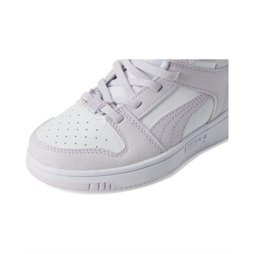 - The PUMA Kids Rebound Layup Mid Hook and Loop shoes are a new interpretation of a classic mid-cut basketball-inspired trainer, adding a stylish touch to your kid's game with the new Puma rebound layup. Combining retro and futuristic basketball-inspired style, these sleek sneakers feature a perforated forefront, clean lines, and the iconic Puma Formstrip to have your kid commanding attention both on and off the court. The faux leather upper of these shoes is made with at least 20% recycled material. These mid-top sneakers are made of a step-in comfort rubber insole that provides soft cushioning thanks to their extra thick heel while the polyester lining keeps your kid's feet cool. Designed with an adjustable hook-and-loop strap and with elastic laces for optimal fit, these sneakers make a great addition to your kid's footwear collection.