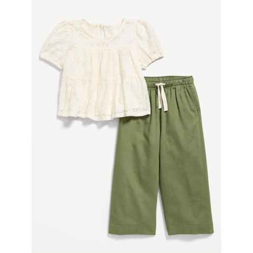 [US] OldNavy Short-Sleeve Lace Top and Chambray Pants Set for Toddler Girls