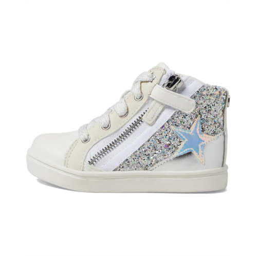 - Give her that stellar look by pairing her outfit with the super chic and shimmery Nina Kids Yuti Sneakers. Featuring a high-top construction, the shoes display a smooth synthetic upper with glitter accents and eye-catching star appliques. They are set on an ultra-comfy memory foam cushioned insole and designed with a classic lace-up panel with a functional zippered closure.