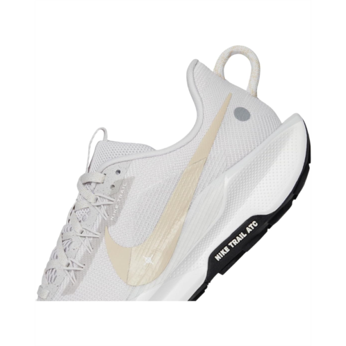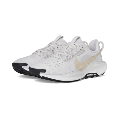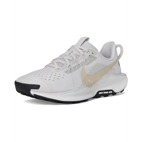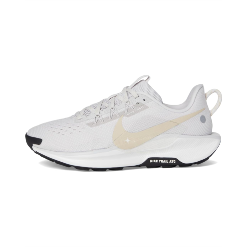 - The Nike Pegasus Trail 5 is a versatile trail-running shoe designed for smooth transitions between road and rugged terrain. It features a springy ReactX foam midsole that delivers energy return13% more responsive than previous React techand a Nike Trail All Terrain Compound (ATC) rubber outsole for enhanced grip on steep inclines and wet surfaces. The engineered mesh upper combines open holes for breathability with tighter weaves in high-wear zones like the toe box, while Flywire technology integrated with the laces helps secure the midfoot for a stable fit.