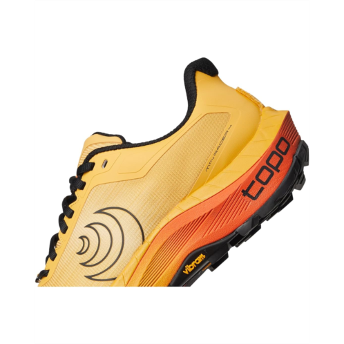 - The Topo Athletic Mtn Racer 4 is a performance-tuned, high-cushion trail runner built for fast and long runs on technical terrain. Designed with a snugger upper fit for added security, it keeps you steady on rugged terrain. The Vibram Megagrip outsole enhances traction and slip resistance across all surfaces, while the specialty FKT Insole provides a responsive feel and optimal drainage in wet conditions.