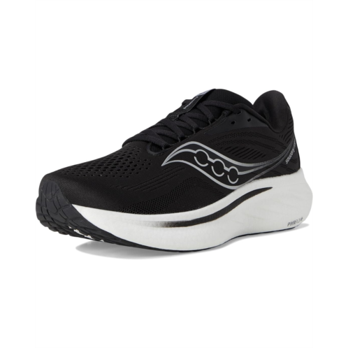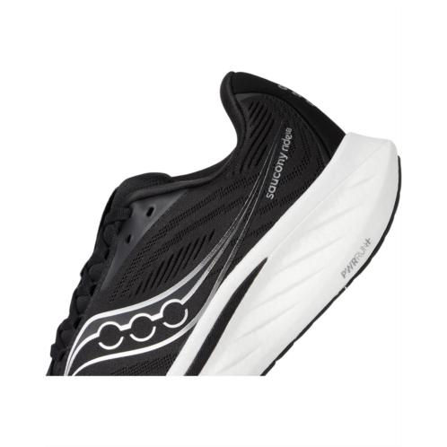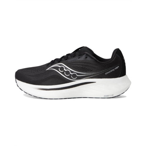 - The Saucony Ride 18 is the core neutral cushioning training shoe. Built as the most versatile shoe in the line, it brings premium foam innovation and comfort that feels as good and on a 10 mile run as it does in a session at the gym or a well-earned recovery walk. Crafted from leather upper, nylon lining, and EVA insole, this pair of shoes features round toe, lace-up closure, and brand detailing on the tongue, footbed, and heel counter. This pair of neutral cushioning shoes have a traditional hourglass shape to provide a well cushioned ride but with a nimble transition from heel to toe.