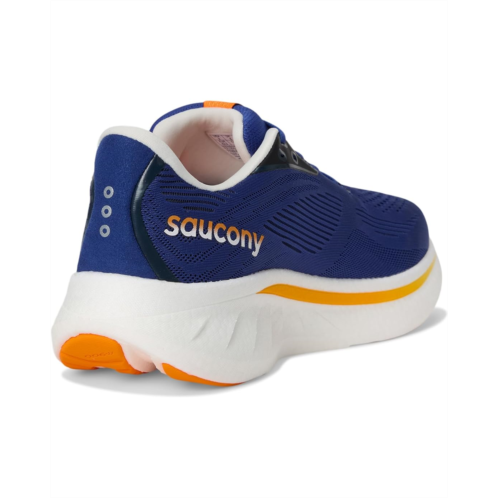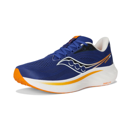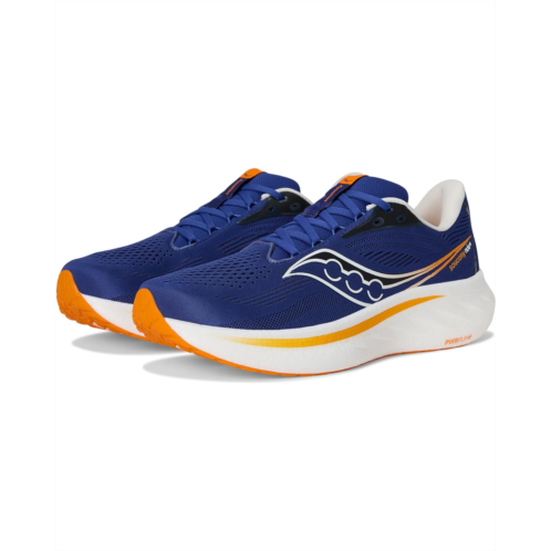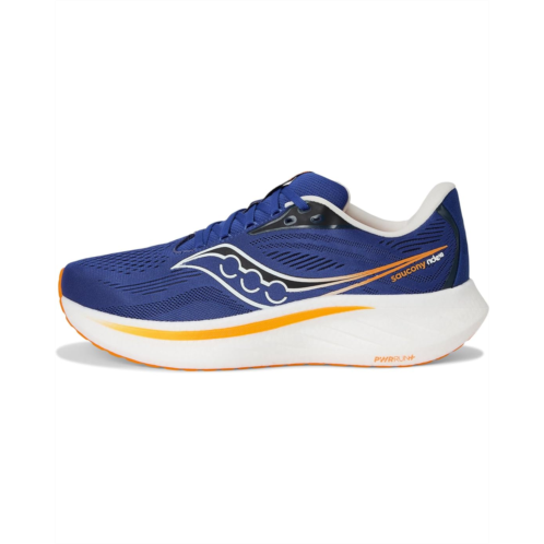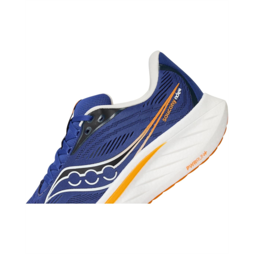 - The Saucony Ride 18 is the core neutral cushioning training shoe. Built as the most versatile shoe in the line, it brings premium foam innovation and comfort that feels as good and on a 10 mile run as it does in a session at the gym or a well-earned recovery walk. Crafted from leather upper, nylon lining, and EVA insole, this pair of shoes features round toe, lace-up closure, and brand detailing on the tongue, footbed, and heel counter. This pair of neutral cushioning shoes have a traditional hourglass shape to provide a well cushioned ride but with a nimble transition from heel to toe.