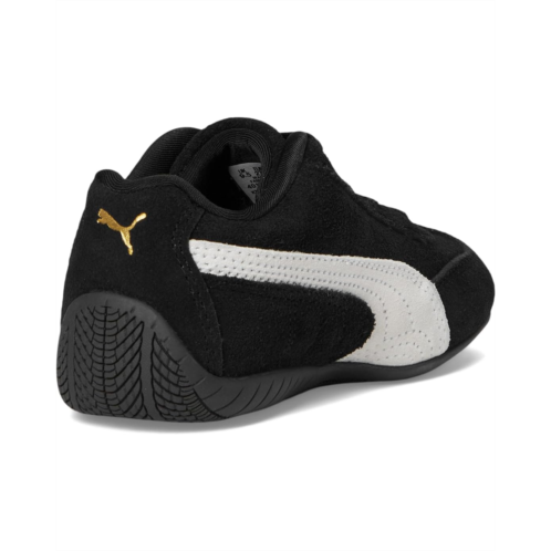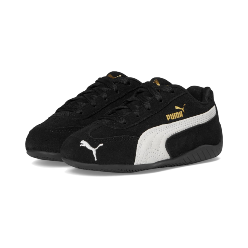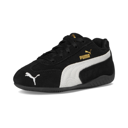 - An icon of racing culture, the PUMA Kids Speedcat Shoes have been synonymous with speed, precision, and unparalleled performance for over 25 years. Over the decades, they found themselves on a new circuit - transcending the tracks of Monaco for the streets of global fashion capitals. Kids will stand out in low-top shoes featuring a suede upper and bold suede PUMA Formstrip complemented by rubber tooling that wraps around the heel, adding a modern touch to the timeless silhouette. Marking 25 years of excellence, they are a PUMA icon influenced by racetrack speed. Embrace the low-profile trend with its classic shape and bold details, now making waves in streetwear culture. With a lace closure, these sneakers offer easy wear and removal for effortless comfort. The PUMA branding details include a debossed and gold foil-printed PUMA logo. These lace-up shoes are recommended for young kids between 4 and 8 years.
