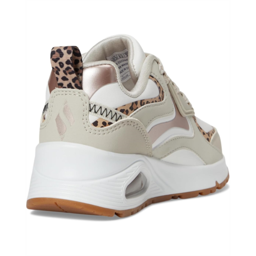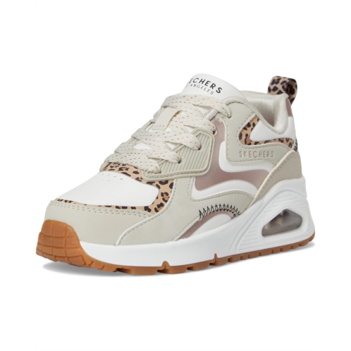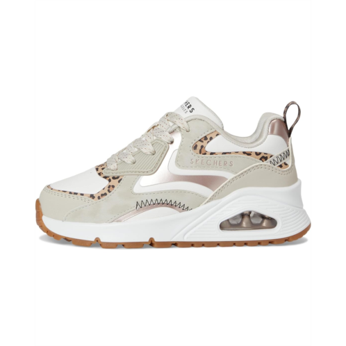 - The next wave of cool: Skechers Kids Street Uno Gen1, a seamless blend of fierce fashion and ultimate comfort. This eye-catching sneaker features a color-blocked synthetic Durabuck and duraleather upper, decked out with animal print underlays, a sparkly charm bracelet, and a crystal heart-lace keeper for glam-on-the-go flair. The visible Skech-Air airbag midsole and Skechers Air-Cooled Memory Foam insole cushion every step with dreamy bounce. A lateral zipper and hook-and-loop closure make slipping in and out a breeze, while the lace-up front keeps the fit secure. Finished with a flexible traction outsole and signature Skechers logo detail, this sneaker is the perfect combo of bold design and all-day wearability.