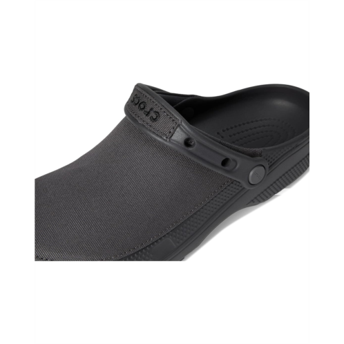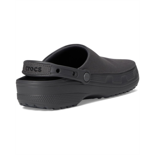 - The Crocs Classic Crafted Canvas Clogs redefine versatile style with their sophisticated canvas upper, perfect for dressing up or down. Whether paired with chinos for a polished look or denim for casual comfort, these waterproof clogs bring effortless style to any outfit. These come with a Croslite outsole for durability and support, a pivoting heel strap for a more secure fit, and iconic Crocs Comfort insole for lightweight and flexible 360-degree comfort. Ideal for those who value both function and fashion, the Classic Crafted Clog is a must-have for any wardrobe. Plus, the Jibbitz holes on the heel straps make it easy to personalize your look even more.