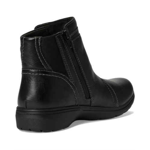 - Step out in style with the Clarks Carleigh Style boots. Made with luxurious leather upper and breathable mesh lining, these boots are as comfortable as they are fashionable. The rubber insole provides all-day cushioning, while the eye-catching detail and zippered side closure add a modern twist. Finished with round toes for a classic touch, these boots are versatile enough to pair with any outfit.