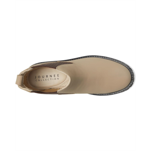 - Journee Collection Alara, the basic but classic Chelsea bootie designed to elevate your style effortlessly. These booties feature a stretch gore for easy pull-on wear, adding convenience to your everyday look. Slip into all-day comfort with the 4 mm insole, ensuring a cozy and supportive experience with every step. Made with luxurious vegan leather upper and showcasing a round toe design and block heel, Alara exudes timeless charm. With a treaded sole, Alara offers a perfect blend of fashion and functionality.