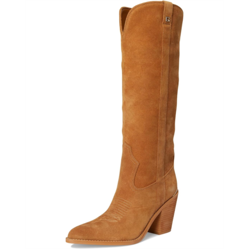 - The Sashan by Guess offers a curved topline knee-high boot in beautiful suede materials. This stacked heel featuring topline stitching mimics Western flair. Made from soft suede upper, polyurethane lining, padded insole, and rubber outsole.