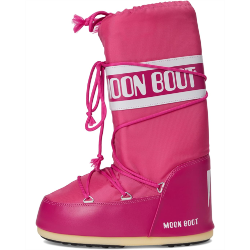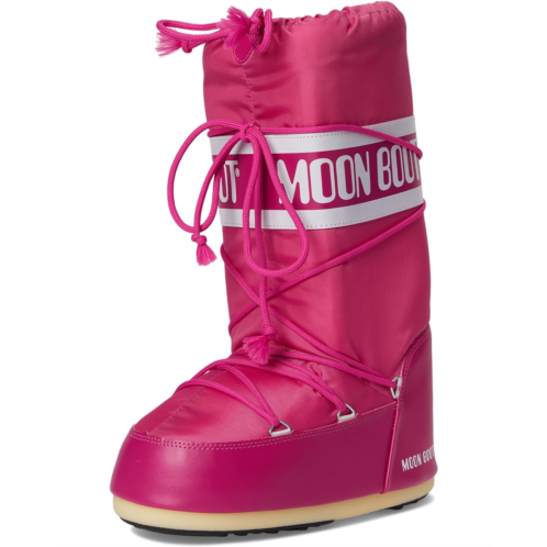 - Iconic design, unmatched warmth in the MOON BOOT Icon Nylon! Elevate your snow style with a durable nylon upper and knee-high design that conquers the cold. Experience the perfect blend of comfort and support with a PU insole and grippy rubber outsole, keeping you steady on icy terrain. The round toe and lace-up closure provide a snug fit, making these snow boots as functional as they are fashionable.