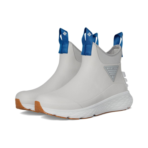 - The Columbia PFG Pro Sport Boots are built for anglers and outdoor enthusiasts who demand comfort, traction, and waterproof protection in wet conditions. Featuring a vulcanized rubber upper with added reinforcement at the toe and heel, these boots block splashes and puddles while remaining flexible and easy to wear. The Omni-MAX Plus system combines a Techlite+ midsole that cradles the heel for balance with deflection domes in the forefoot and heel to absorb impact and reduce foot stress. Designed for all-day wear, they include deep flex grooves for efficient stride motion and an Omni-Grip non-marking outsole with razor siping for superior traction on slick surfaces. Ergonomic pull loops, a stretchy collar, and durable webbing make them easy to slip on and off.