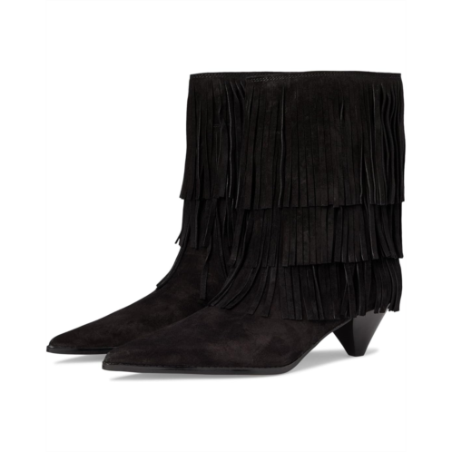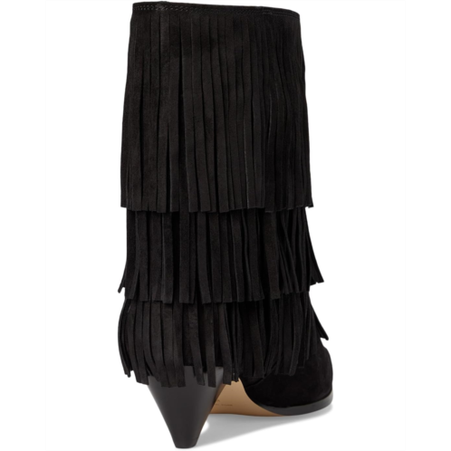 - The MICHAEL Michael Kors Jayla Heeled Boot boasts an ankle-high profile that blends high-fashion energy with bohemian flair. It features a pointed toe, stacked cone heel, and tiered fringe detailing that creates a dynamic effect with every step. The slip-on silhouette offers easy wear, while the sleek suede finish adds a luxe touch.