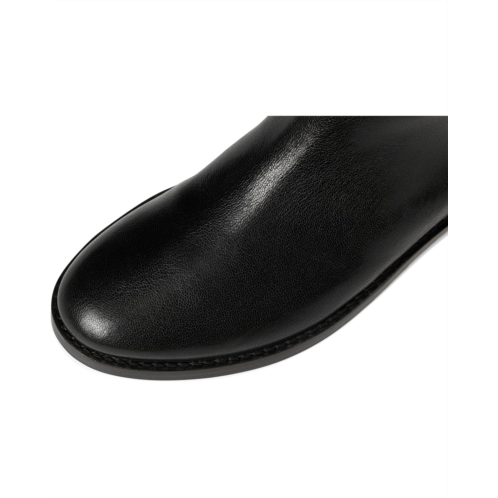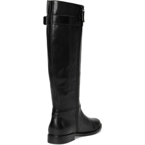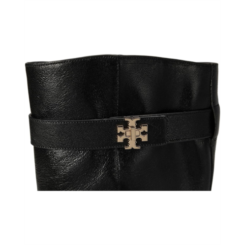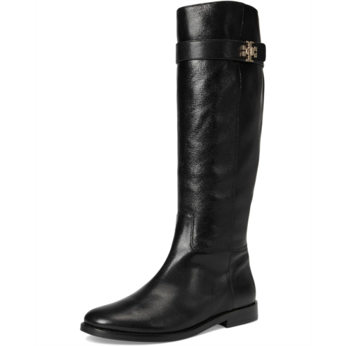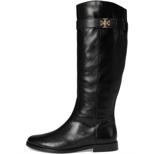- Add confidence to your footsteps and style to your looks wearing the Tory Burch Turnlock Riding Boot. Designed in a calf-high silhouette with a turnlock strap with stunning Tory Burch logo hardware on the shaft and a block heel detail, these boots revamp your look effortlessly. These are made with a leather upper, breathable leather lining, and a comfortable cushioned insole.