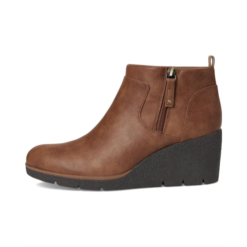 - Exude a stylish statement wearing the Dr. Scholl's Bianca Zip Short Boots. The round-toe boots are crafted with a faux leather upper and fabric linings that are partially made from recycled plastic bottles. These come in a slip-on fit with outside zip and back pull tab for easy on/off. The odor-resistant insole technology with cushioning, comfort, & arch support uses 15% cushy plant-based BLOOM foam insole and prevents the build up of microorganisms. The lightweight, flexible construction moves with you, while the wedge heel detail elevates the height. Plus, the ankle pull tab allows easy donning & doffing.