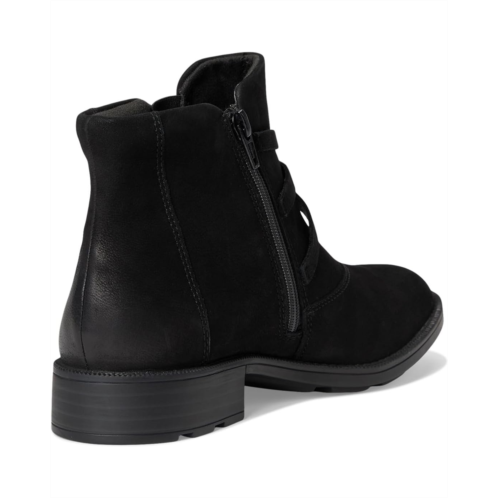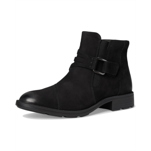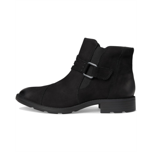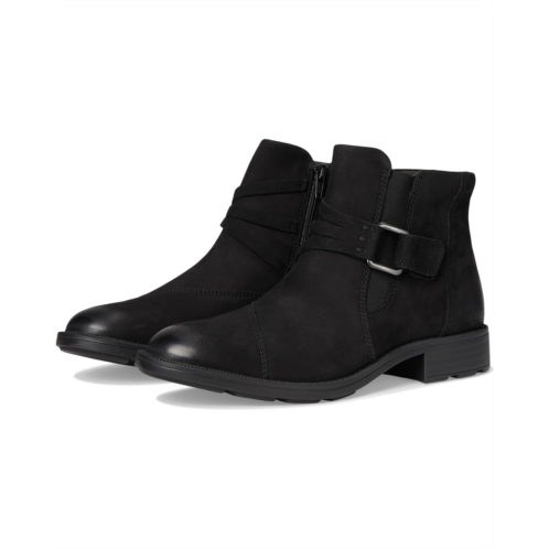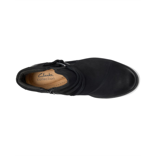 - With distinctive buckle detailing, the Clarks Adalynn Faye boots refresh Clarks Collection's modern-casual line-up this season. They are crafted with a soft nubuck leather upper for a classic, premium look, while the low stack-effect block heels and metal hardware deliver understated style. Underfoot, a lugged TPR outsole offers practicality and ease, navigating autumnal terrain effortlessly. These ankle-high boots are made of a mesh lining and an ultimate comfort foam footbed that delivers lasting cushioning. The zippered side closure provides easy foot entry, while the buckle strap gives an adjustable, secure fit.