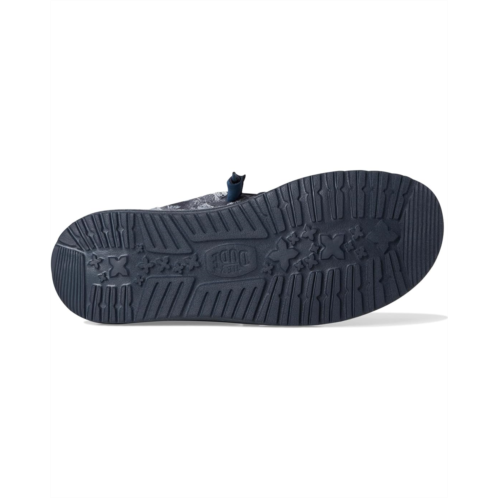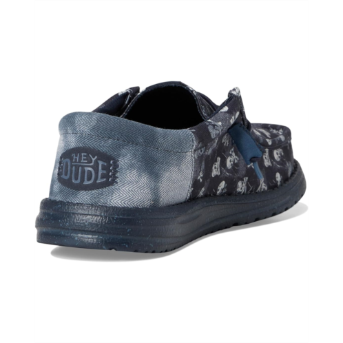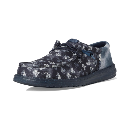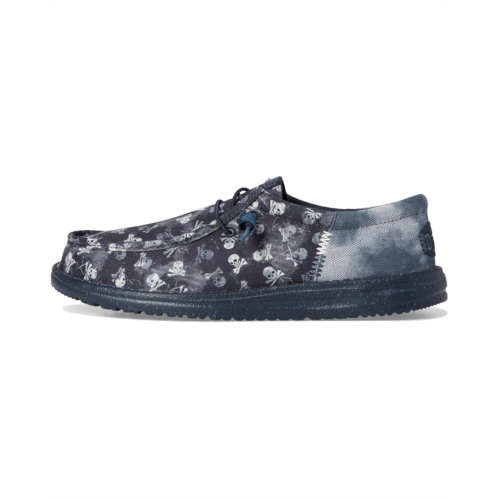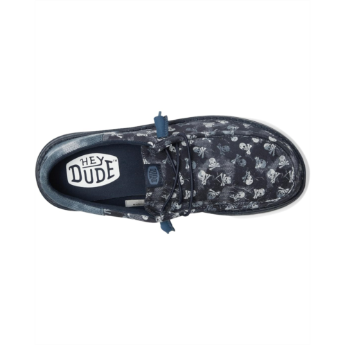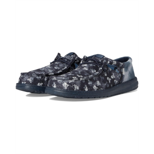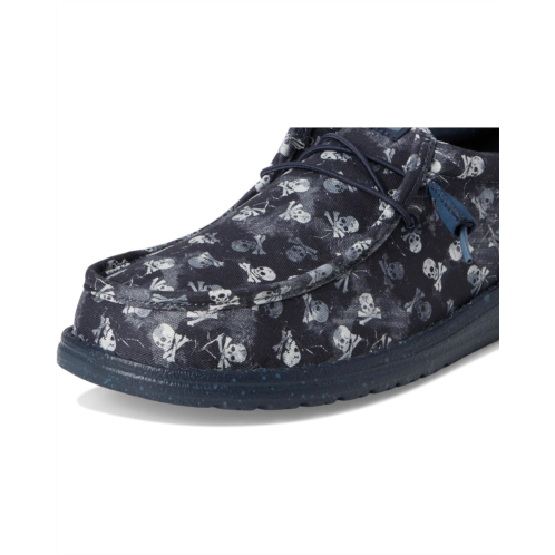 - The Hey Dude Wally Funk Skull Print shoes are slip-on sneakers ready to roam. They are made of an EVA insole and cotton lining. The Flex & Fold design supports healthy feet with its unique shape, giving complete freedom of movement. Made of a cotton upper, these printed low-top sneakers feature elastic laces for a secure fit.