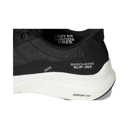 - Make a move in flexible comfort wearing the SKECHERS Contour Foam Cozy Fit Hands Free Slip-in shoes. Designed with an exclusive Heel Pillow, these lace-up sneakers feature a breathable deconstructed quilted mesh upper that provides a roomy flexible fit for enhanced comfort. The Skechers Air-Cooled Memory Foam comfort insole offers pressure relief, instant comfort, and breathability while the gel-infused, high-rebound memory foam cushioning contours to most foot shapes. Designed with a flexible slip-on front for a comfortable fit, these lace-up sneakers add performance comfort to casual occasions. Wear them indoors, around the house, to and from work, business, for travel, or even while driving; the possibilities continue.