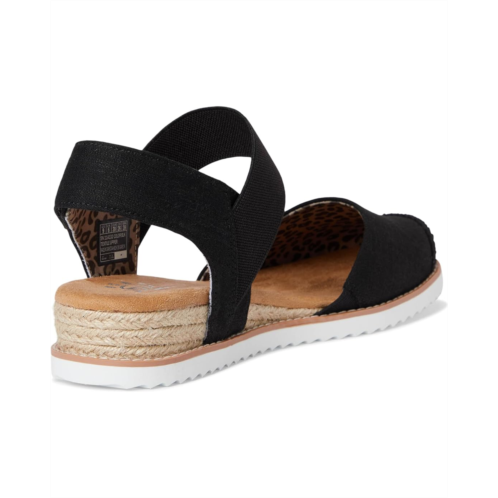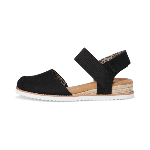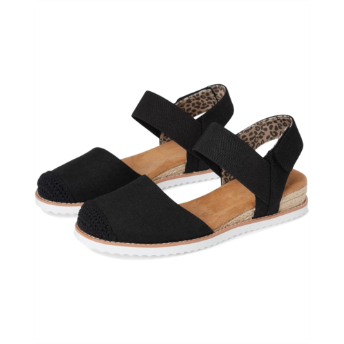 - Provide luxury to your feet wearing the BOBS from SKECHERS Desert Kiss - Sun Shining. Crafted from canvas upper, and EVA insole, this pair of sandals features round toe, ankle strap, hook-and-loop closure, memory foam footbed, low-top silhouette, and low heel.