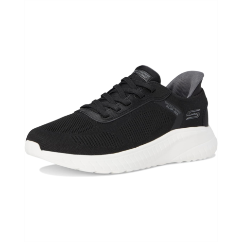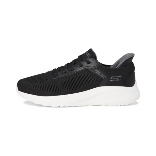 - Step into athletic style and comfort wearing the BOBS from SKECHERS Hands Free Slip-Ins Squad Chaos - Solid Step shoes. Designed with an exclusive Heel Pillow, these fashion sneakers feature an engineered knit upper with stretch laces and a cushioned Skechers Memory Foam insole. Experience cushioned comfort wherever you go wearing these lace-up sneakers.