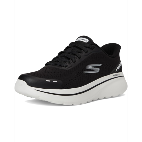 - All-day comfort and support combine in the SKECHERS Performance Go Walk Arch Fit N-joy Nobend Hands Free Slip-in shoes. They feature an engineered mesh upper with bungee laces and an Arch Fit insole. These lace-up sneakers are made of a cushioned insole and fabric lining. The Skechers Hands Free Slip-ins design offers an easy fit, while the Soft Stride technology adds to their comfort. Machine washable, these low-top shoes are ideal for everyday wear.