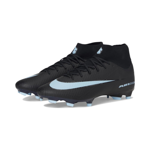 - The Nike Superfly 10 Academy cleats are built to elevate your game with a fusion of speed, control, and comfort. The upper features NikeSkin with embedded chevrons, delivering amplified touch and a barefoot-like feel for precise ball control. Beneath your feet, a wave-like traction pattern with cascading studs engages more surface area of the Air Zoom unit, offering explosive grip and quick-stop agility without compromising traction. Evolved chevron and blade studs further enhance your ability to cut and accelerate with confidence. For a snug, adaptive fit, the cleats incorporate a flexible knit upper and a Dynamic Fit collar that wraps your ankle in soft, stretchy fabric.