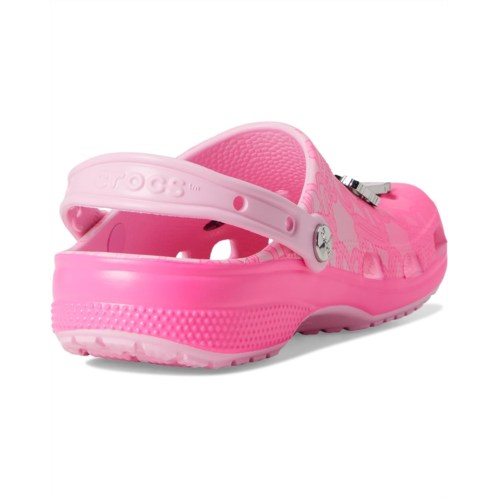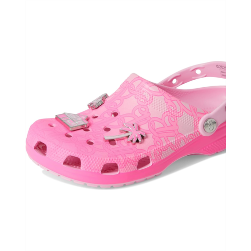 - The new Barbie Classic Clog is the perfect statement shoe for fashion icons everywhere. This comfortably chic style comes in a pink hue with a stylish all-over monogram print. Make your look shine with elevated enamel Jibbitz charms featuring a Dreamhouse, roller skate, palm tree, heart sunglasses, and Barbie logo.