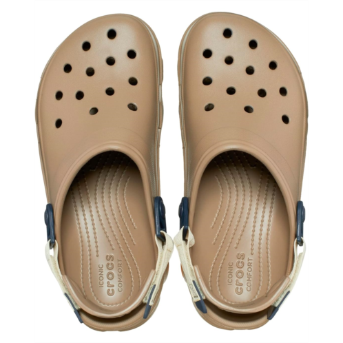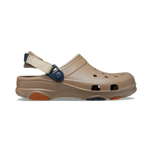 - Travel. exploration. adventures near and far. The Classic All-Terrain Clog is ready for it all, even in the harshest environments. With a more rugged outsole and an adjustable turbo strap, the ground beneath your feet has never felt more surmountable. Lightweight Croslite construction makes them a practical and packable choice for any outing. It's time to shift into all-wheel drive. Flip that strap back and go find your fun!