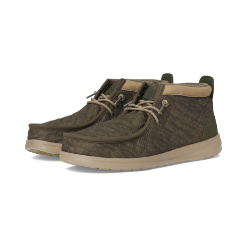 - The Hey Dude Wally Mid Gripr Washed Quilt is built for cozy comfort and effortless style, no matter the forecast. Featuring a quilted nylon-textile upper with water-resistant treatment and suede heel accents, it's designed to keep you warm and dry while maintaining that signature Hey Dude cool. The easy-on system with elastic laces offers a snug, slip-on fit, while the lightweight, flexible rubber outsole delivers reliable traction across varied terrain. Inside, a microfleece lining and removable foam insole wrap your feet in softness, making it perfect for stepping out in seasonal style.